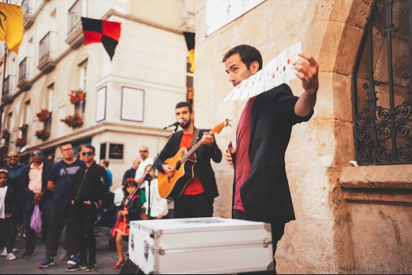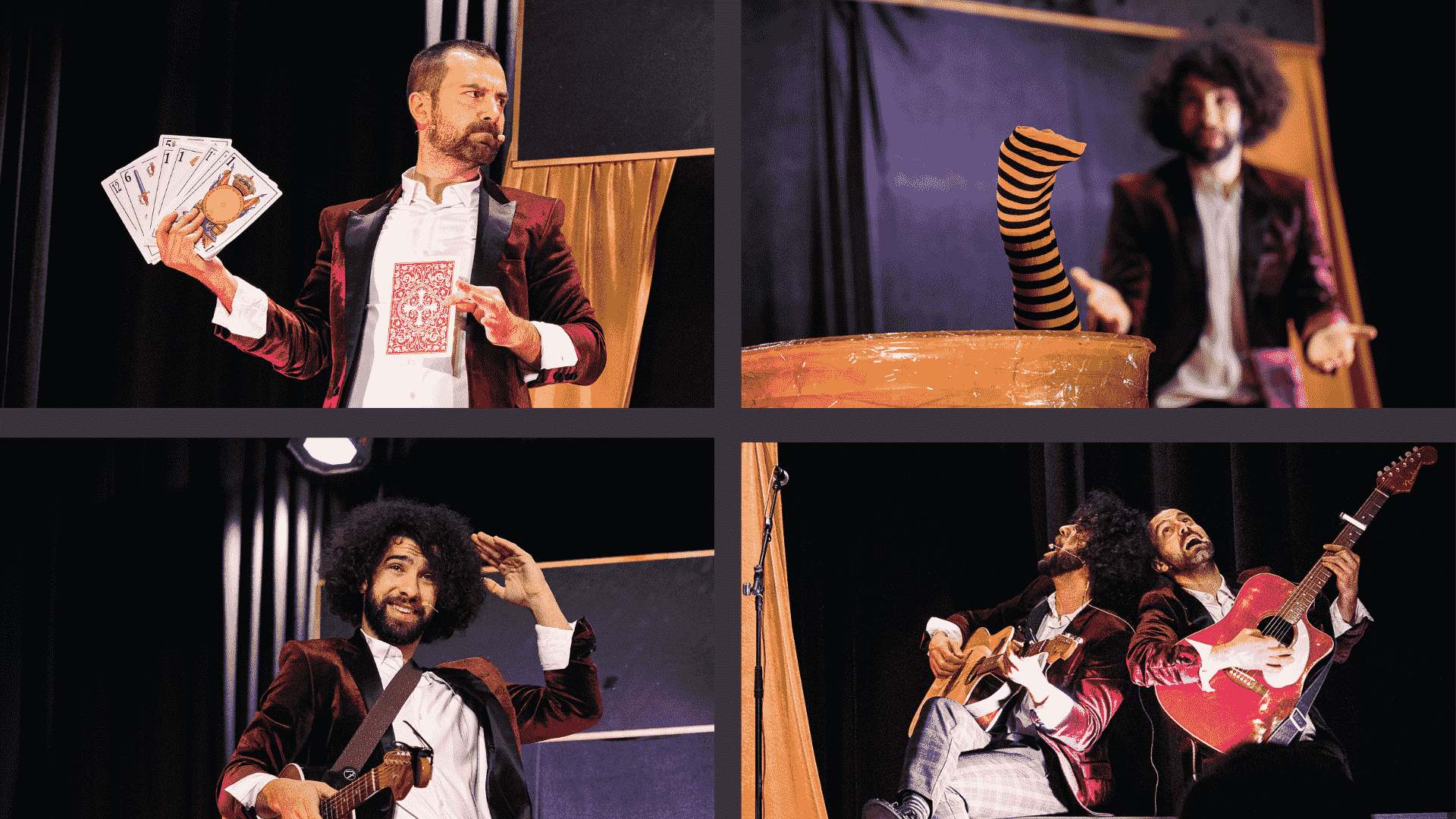 Artistas, magos, músicos o simples farsantes. Estos dos trotamundos nos sumergen en un espectáculo desenfrenado lleno de comedia. Música mágica es el sueño de dos amigos que exploran el punto donde la magia y la música se tocan para descubrir que la música así es más mágica, y la magia suena mejor.
